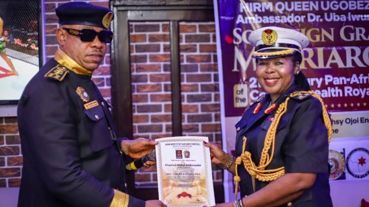 The Chairperson of Ikenga Abiama Dynasty Foundation of Igboland, HIRM Amb. Dr. Uba Iwunwa, Queen Ugobeze, has been officially decorated as the Global Ambassador of the Divine Institute of Chaplaincy Corps International (DICCI).